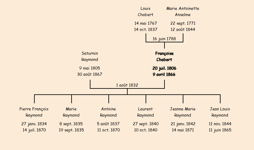 Epouse : Françoise Chabert, fille de Louis et de Marie Antoinette Anselme |