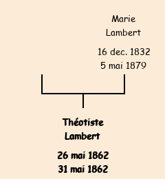 Mère : Jeanne Marie Lambert, fille de Pierre (cultivatrice, 28 ans) | Marraine : Jeanne Marie Lambert |