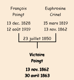 Mère : Euphrosine Crinel (cultivatrice, 42 ans, vient de décéder) | Marraine : Victoire Gravier |