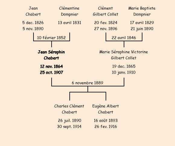 Epoux : Jean Séraphin Chabert (25 ans, né le 12 novembre1864, cultivateur aux Anselmes, a signé), fils de Jean (cultivateur aux Anselmes, a signé) et de Clémentine Dompnier (cultivatrice, n'a pas su signer) |