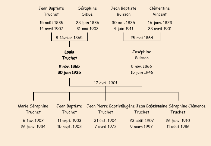 Epoux : Louis Truchet (35 ans, né le 9 novembre1865 à L'Alpettaz), fils de Jean Baptiste et de Séraphine Sibué |
