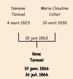 Père : Damase Taravel, fils de Jacques (cultivateur 42 ans, a signé) | Parrain : François Poingt |