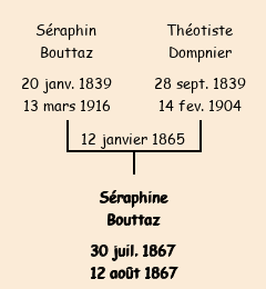 Père : Séraphin Bouttaz, fils de Saturnin (cultivateur, 28 ans, a signé) | Parrain : Saturnin Bouttaz |
