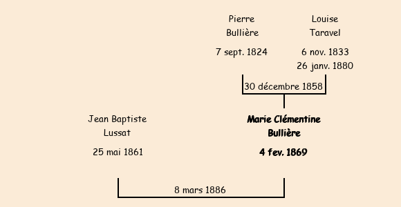 Mariée (17 ans) avec Jean Baptiste Lussat (24 ans) le 8 mars 1886 à Saint-Pancrace |