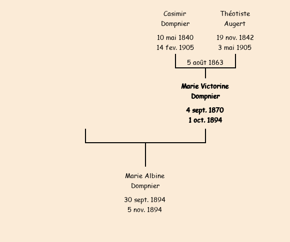 Père : Casimir Dompnier, fils de Auguste (meunier, 30 ans, a signé) | Parrain : Pierre Augert |