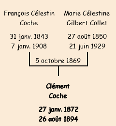 Père : Célestin Coche (cultivateur domiciliés à Saint Jean d'Arves) |
