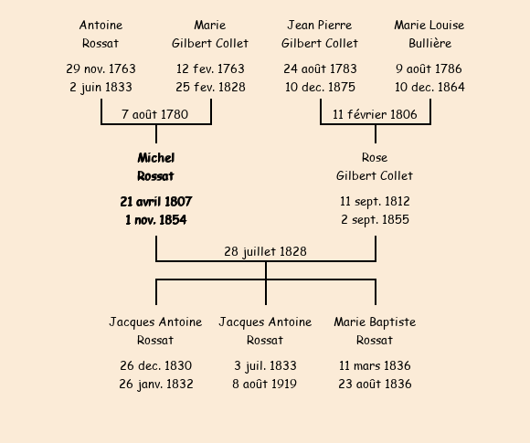 Epoux : Michel Rossat, fils de Antoine et de feue Marie Collet |