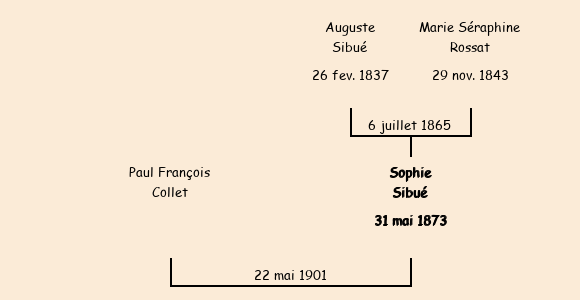 Père : Auguste Sibué, fils de Pierre Antoine (cultivateur, 37 ans) | Parrain : Saturnin Rossat |