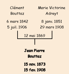 Père : Clément Bouttaz, fils de Jean Pierre (cultivateur, 31 ans) | Parrain : Pierre Antoine Bouttaz |
