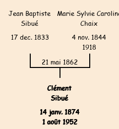 Père : Jean Baptiste Sibué, fils de Louis (cultivateur, 40 ans) | Parrain : Clément Claraz |