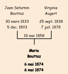 Père : Jean Saturnin Bouttaz, fils de Jean Pierre | Parrain : - |