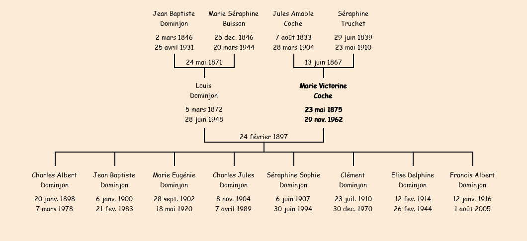 Marie Victorine Coche apparait dans le dénombrement de la population de 1906. |