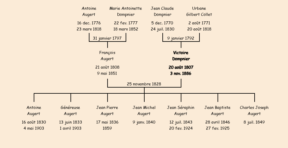 Epoux : François Augert, fils de feu Antoine et de Marie Antoinette Dompnier |