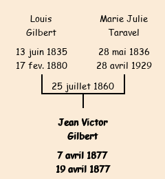 Père : Louis Gilbert, fils de Michel (cultivateur, 42 ans) | Parrain : Jean Victor Gilbert |