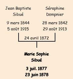 Père : Jean Baptiste Sibué, fils de Augustin (cultivateur, 33 ans) | Parrain : Séraphin Dompnier |