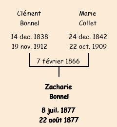 Père : Clément Bonnel, fils de Claude (charpentier, 39 ans) | Parrain : Zacharie Bonnel |