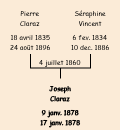 Père : Pierre Claraz, fils de Jean Michel (cultivateur, 42 ans) | Parrain : Joseph Sibué |