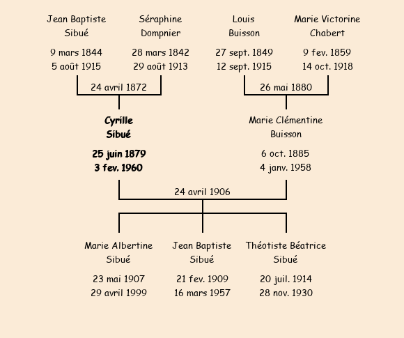 Père : Jean Baptiste Sibué, fils de Augustin (cultivateur, 35 ans) | Parrain : Cyrille Gilbert Collet |