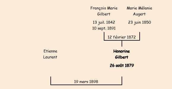 Mère : Marie Mélanie Augert (cultivatrice, 30 ans (37 par erreur à l'état laïc)) | Marraine : Honorine Gilbert |