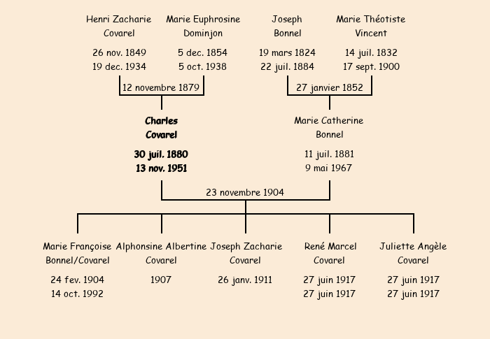 Père : Henri Zacharie Covarel, fils de Jean Baptiste (cultivateur, 31 ans) | Parrain : Charles Covarel |