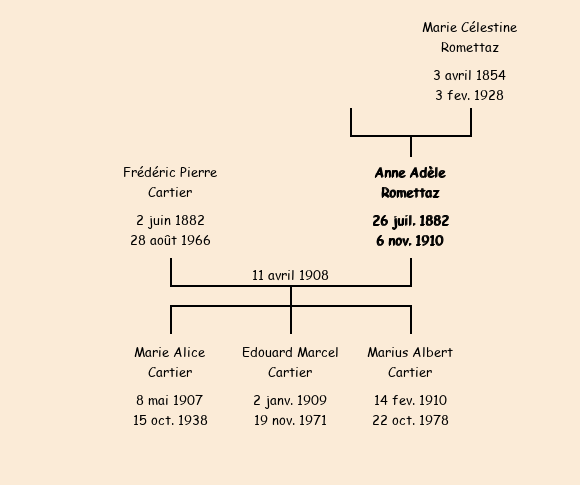 Mariée (25 ans) avec Frédéric Pierre Cartier (25 ans) le 11 avril 1908 à Vienne |