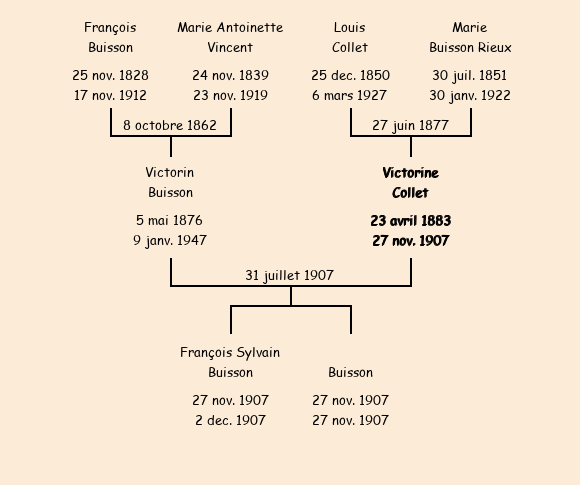 Mariée (24 ans) avec Victorin Buisson (31 ans) le 31 juillet 1907 à Fontcouverte |