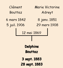 Père : Clément Bouttaz, fils de Jean Pierre (cultivateur, 42 ans) | Parrain : Jean Dominjon |