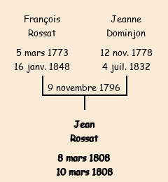 Mère : Jeanne Dominjon | Marraine : Catherine Taravel (fille de Jean Baptiste décédé) |