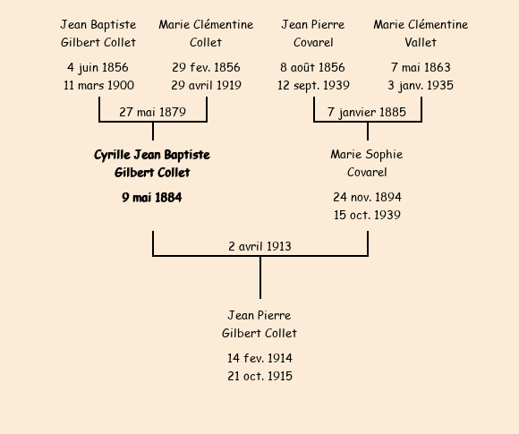 Père : Jean Baptiste Gilbert Collet (cultivateur, 28 ans) | Parrain : Cyrille Gilbert Collet |