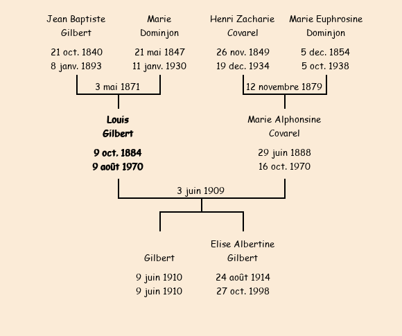 Père : Jean Baptiste Gilbert, fils de Louis (cultivateur, 44 ans) | Parrain : Pierre Gilbert (47 ans, fils de Louis) |