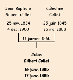 Père : Jean Baptiste Gilbert Collet (50 ans culitvateur à La Rochette) |