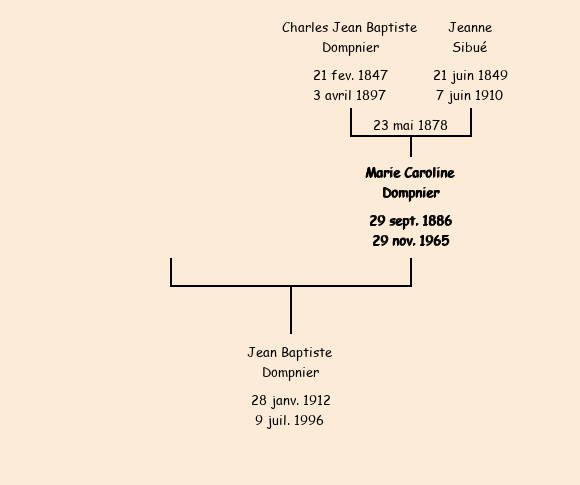 Père : Jean Baptiste Dompnier, fils de Victor (cultivateur, 39 ans) | Parrain : Pierre Sibué |