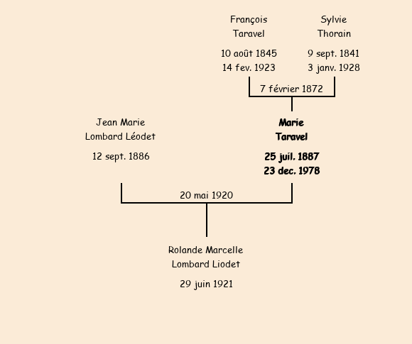 Epoux : Jean Marie Lombard Liodet (33 ans, né à Saint Jean de Maurienne le 12 septembre1886, ouvrier d'usine, divorcé de Catherine Louise Buisson le 22 mars1920), fils de Michel (domicilié à Saint Jean de Maurienne) et de feue Marie Philomène Téaz |