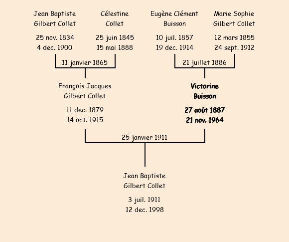 Mariée (23 ans) avec François Jacques Gilbert Collet (31 ans) le 25 janvier 1911 à Fontcouverte |