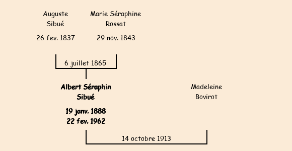 Père : Auguste Sibué, fils de Pierre Antoine (cultivateu,r 51 ans, du Chef Lieu) | Parrain : Charles Sibué |