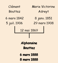 Père : Clément Bouttaz, fils de Jean Pierre (cultivateur, 46 ans) | Parrain : Michel Crinel |