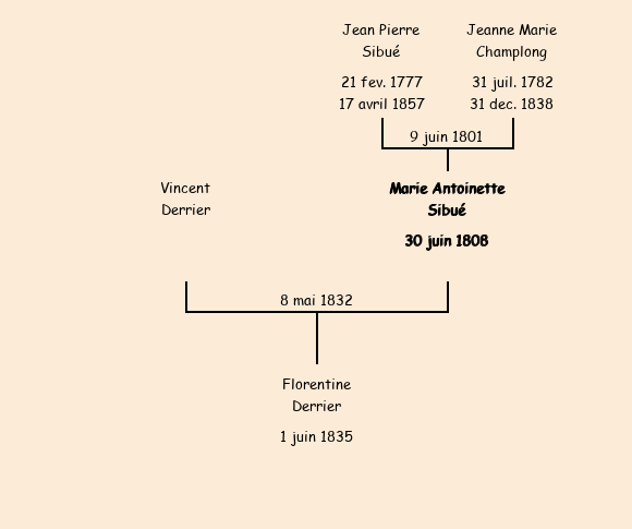 Epouse : Marie Antoinette Sibué, fille de Jean Pierre et de Jeanne Marie Champlong |