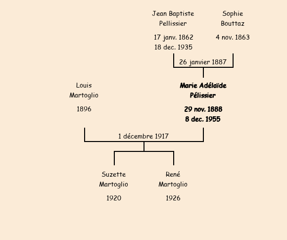 Mentions marginales : Mariée avec Louis Martoglio? de Condri ? près de Turin le 1er décembre 1917, décédée à Saint Jean de Maurienne le 8 décembre 1955, CA Saint Jean de Maurienne | |