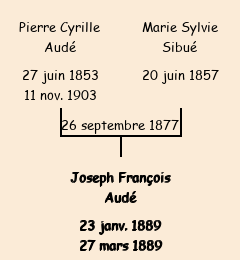 Père : Cyrille Audé (36 ans cultivateur au Suel) |
