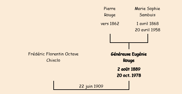 Mariée (19 ans) avec Frédéric Florentin Octave Chisclo le 22 juin 1909 à Lyon |