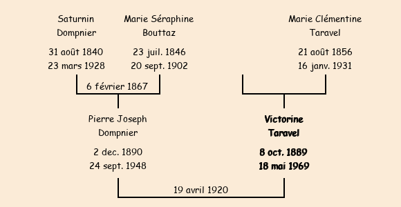 Mariée (30 ans) avec Pierre Joseph Dompnier (29 ans) le 19 avril 1920 à Fontcouverte |
