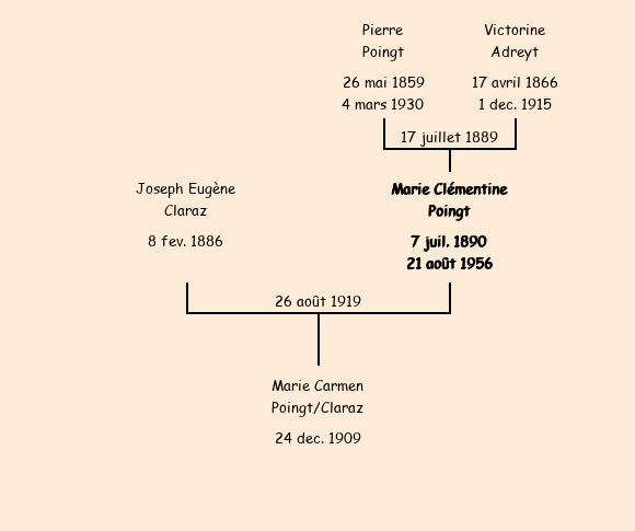 Epouse : Marie Clémentine Poingt (née à Fontcouverte le 7 juillet1890, du Villard), fille de Pierre et de feue Victorine Adrait |