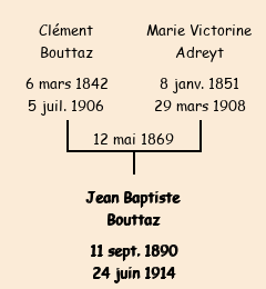 Père : Clément Bouttaz, fils de Jean Pierre (cultivateur, 48 ans) | Parrain : Jean Pierre Bouttaz |