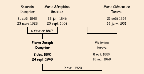 Epoux : Pierre Joseph Dompnier (29 ans, né le 2 décembre1890 à Fontcouverte et domicilié à Fontcouverte), fils de Saturnin et de feue Marie Séraphine Bouttaz |