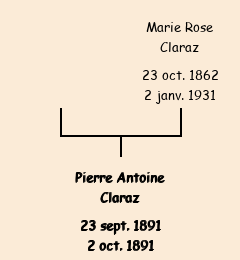 Mère : Marie Rose Claraz (sans professions, fille de Séraphine Vincent décédée) |