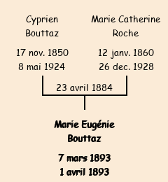 Père : Cyprien Bouttaz (43 ans culitvateur à Tillerèche) |