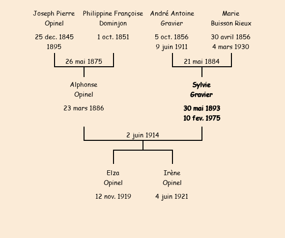 Epoux : Alphonse Opinel (né le 23 mars1886 à Albiez le Vieux, ouvrier coutellier), fils de feu Joseph et de Françoise Dominjon (domicilié à Albiez le Vieux au hameau de Gévoudaz) |