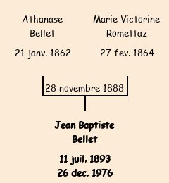 Père : Athanase Bellet, fils de Louis (cultivateur, 31 ans, originaire de Beaune canton de Saint Michel de Maurienne) | Parrain : Jean Baptiste Bonnel |