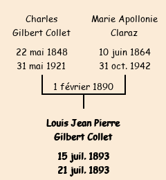 Père : Charles Gilbert Collet, fils de Pierre (cultivateur, 45 ans) | Parrain : Louis Claraz |