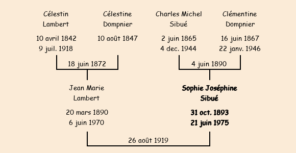 Mariée (25 ans) avec Jean Marie Lambert (29 ans) le 26 août 1919 à Hermillon |